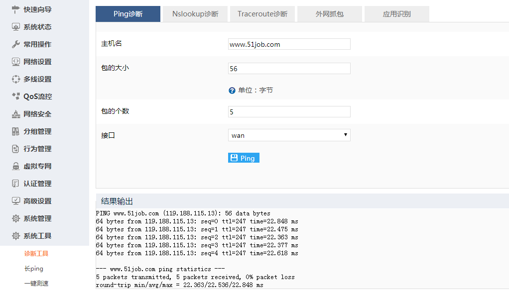 答:网安在线路由器测速是顺利获得访问网站来测速的,pingwww.51job.com,测速才会成功;