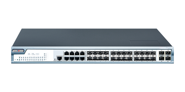 24个千兆SFP光口-8个10/100/1000M复用电口-4个万兆SFP+光口(兼容千兆)-1个Console口-2个电源插槽(标配1个热插拔式AC电源);