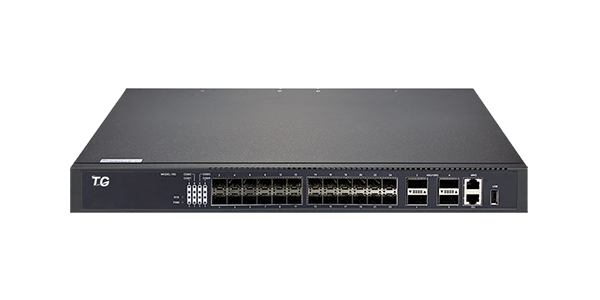 24个10G光口+4个100G光口(兼容40G);2个电源槽位,标配2个AC 220V电源;内置4风扇左右风道;1U高度,19英寸机架式安装